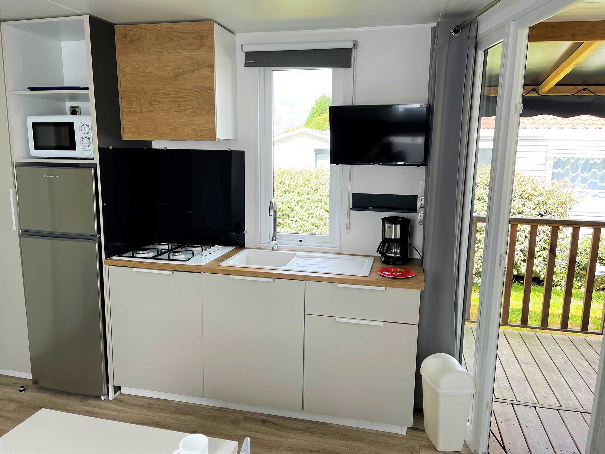 The Comfort mobile home (2 bedrooms) is equipped with :